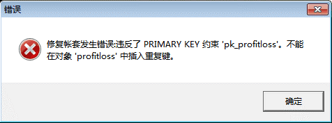 速达3系修复账套提示:修复账套发生错误,不能在对象‘profitloss’中插入重复键
