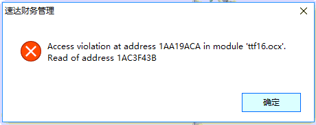 问题描述:速达软件win10系统,打开财务自定义报表提示:ttf16.ocx错误